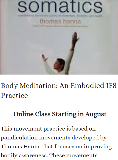 Additionally, I invite you to join our Embodied IFS hike on Sunday. Due to the expected hot weather, we will mindfully stroll along the Spring Creek path instead of hiking. Check out the Offerings page on the Sacred Self website for more info. Please register for this donation-based event on the Sacred Self website.